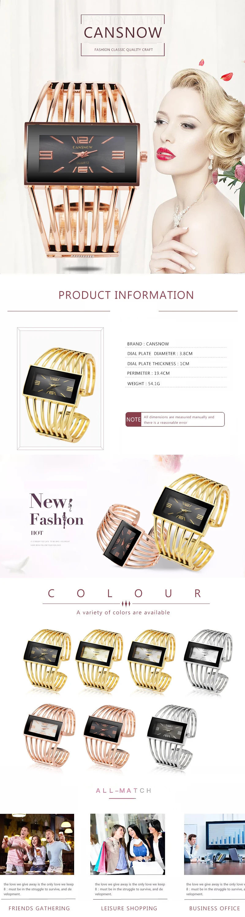 Cansnow relógio feminino de luxo moda rosa ouro pulseira relógio feminino vest