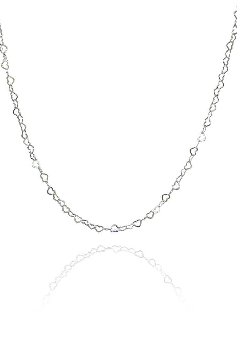 A Corrente de Coração em Prata 925 é uma peça delicada e romântica, perfeita para complementar qualquer look. Com pequenos corações interligados, ela traz um toque de leveza e sofisticação ao visual. Feita em Prata 925, garante brilho duradouro e alta qualidade. Ideal para usar sozinha ou combinada com outros colares, tornando-se um acessório versátil e atemporal.